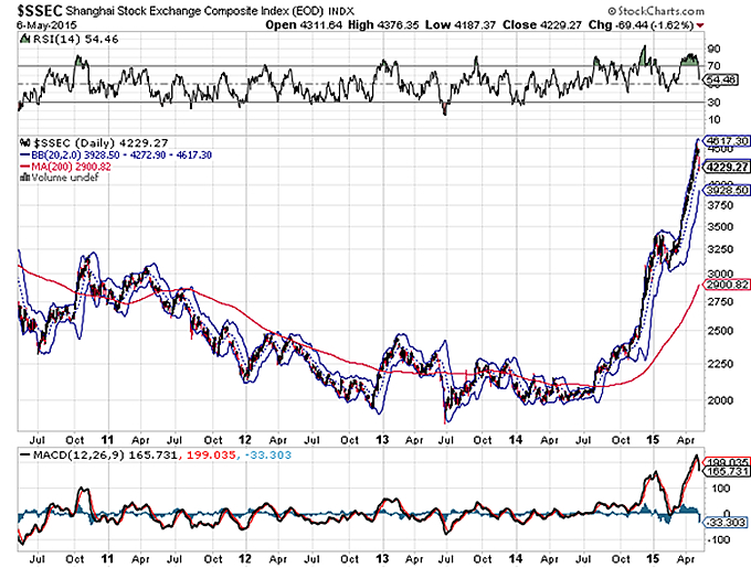 En dan is er nog een heel prozaïsch aspect en wel de lengte van de huidige stierenmarkt. Die is nu 885 dagen oud en zodoende de langste ooit in de Chinese geschiedenis. De gemiddelde lengte van een stierenmarkt in China is slechts 194 dagen en dat is de kortste van alle belangrijke indexen in de wereld. De gemiddelde lengte van de Amerikaanse stierenmarkt komt uit op 1625 dagen. Dat is niet alleen een wereld van verschil, maar het geeft ook aan hoe gemakkelijk en hoe snel het weer op de Chinese markt kan omslaan. Dat feit mag een belegger niet veronachtzamen!