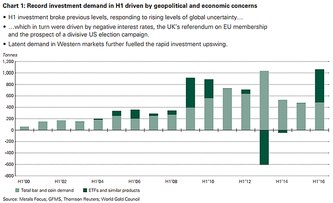 Beleggers kochten recordhoeveelheid goud in eerste helft 2016 (Bron: World Gold Council)