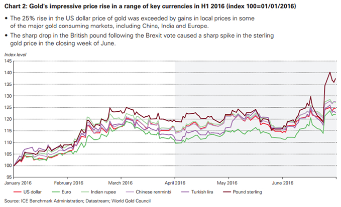 Stijging goudprijs was in veel valuta nog groter dan in Amerikaanse dollars (Bron: World Gold Council)