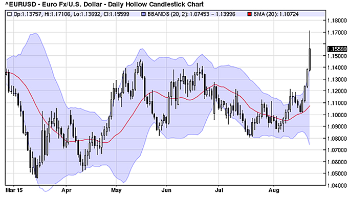 Misschien dat de centrale bank van de Verenigde Staten enig soelaas kan bieden. Al maanden wikt en weegt de bank onder leiding van mevrouw Yellen: zullen we nu wel of niet de rente in september gaan verhogen? De afgelopen weken is bij de fedwatchers twijfel gegroeid. Een besluit in september is niet langer een hamerstuk. Door de gang van zaken in China is ook binnen de Fed de twijfel gegroeid over de wijsheid om in september de rente te gaan verhogen. Bedrijven zouden er weleens veel nadeel van kunnen gaan ondervinden. Aan de andere kant, een achterwege laten van een verhoging heeft ook nadelen. Er sluimert sowieso twijfel over de kracht van het herstel van de Amerikaanse economie. Dat verklaart ook de winst die de euro maandag op de dollar boekte. De wereld lijkt er momenteel het meest bij gebaat, dat Europa en zeker en de Verenigde Staten soliditeit uitstralen.