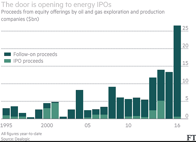 Begin oktober was het weer eens zover. De IPO van het bedrijf Extraction Oil & Gas werd een onverwacht groot succes. Het energiebedrijf haalde $ 633 miljoen uit de markt. Het was de meest succesvolle IPO in de sector sinds het midden van 2014, toen de olieprijs aan zijn val begon. Het succes van deze IPO was zo groot, dat andere bedrijven plannen maken om nog voor het einde van 2016 naar de markt te komen.