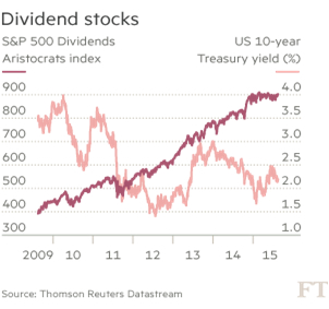 In de markt heerst al tijden het idee, dat het met China economisch een stuk minder gaat, dan de officiële cijfers doen bevroeden. De renteverlaging van 11 augustus en het besluit van de Chinese overheid om de koersen niet langer te steunen bevestigden die indruk en versterkten bovendien de vrees van een wereldwijde deflatoire omgeving. In een dergelijke omgeving is het meer dan aannemelijk, dat rendementen op obligaties nog verder gaan teruglopen. Dat is weer een uitstekende basis voor een verhoogde belangstelling voor dividendaandelen. Die hadden het de laatste maanden wat moeilijk, omdat de economie leek te gaan normaliseren. In de VS was de teruglopende belangstelling voor dividend goed af te lezen aan de ruime verkoop van aandelen die traditiegetrouw een mooi rendement bieden, zoals utilities of telecoms.