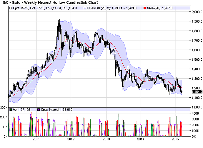 Nu lijken we aan alweer een nieuwe ronde begonnen. Sinds 2011 is de dollar index met 36% gestegen en de goudprijs met 39% gedaald. Of de daling van de goudprijs aanhoudt, hangt voor de korte termijn af van de opstelling van de Fed, het stelsel van Amerikaanse centrale banken. Als die besluit om op korte termijn de rente te verhogen, dan kan de dollar zomaar nog 10% - 15% aansterken. Althans, dat denken ze bij ABN Amro. Als dat gebeurt dan zal volgens dezelfde bank de prijs van goud dit jaar en in 2016 onder druk blijven.