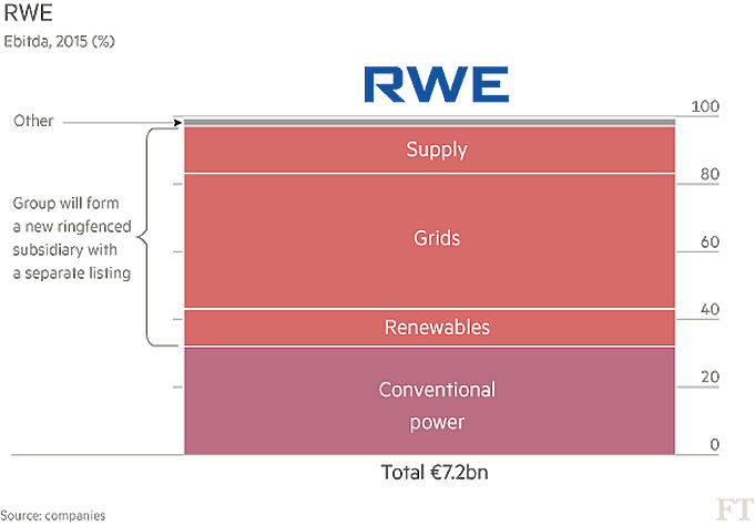 RWE heeft na lang delibereren voor een ietwat andere weg gekozen. Het klassieke RWE houdt de ‘vuile’ activiteiten onder zich. Groen en hernieuwbaar komt in een nieuwe dochter, die in etappes naar de beurs gebracht zal worden. Deze aanpak heeft geen reactie opgeroepen, maar dat wil weer niet zeggen dat RWE nu nagenoeg zorgeloos verder kan gaan. Nog in april van dit jaar kwam een overheidscommissie tot de slotsom dat de vier opwekkers van kernenergie gezamenlijk € 23,3 miljard op tafel moeten leggen om de kosten voor het opruimen van het kernafval te bekostigen. Nog meer schuld zou RWE letterlijk de kop kunnen kosten. Het bedrijf gaat nu al gebukt onder een hoge schuldenlast, lage prijzen voor elektriciteit en een teveel aan kolen en bruinkool.