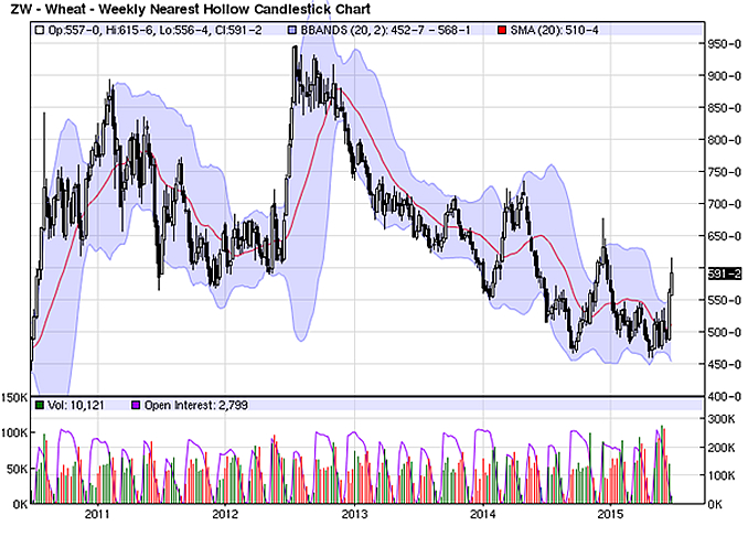 Het zag er zo goed uit in de eerste maanden van 2015. Uit alle belangrijke graan producerende delen kwamen geluiden over een mooie en overvloedige graanoogst. Dat optimisme was terug te zien op de termijnmarkten. Daar daalden de prijzen voor de diverse graansoorten aan een stuk. Handelaren gingen ‘short’ in de verwachting dat prijzen maar een kant op zouden kunnen en dat was omlaag.
