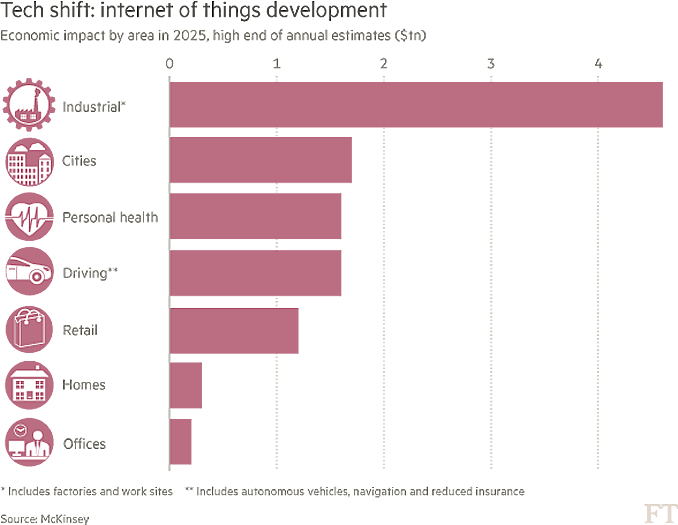 Volgens GE zal pakweg $ 100 miljard naar een kleine groep bedrijven gaan, die in staat is om de centrale platforms voor het Internet te bouwen. Dat betekent dat zij software kunnen ontwikkelen die de data verzamelt en combineert. Zodoende ontstaat een basis, waarop weer nieuwe applicaties kunnen gebouwd worden. Die basis kan ook functioneren als etalage waar ontwikkelaars hun vaardigheden kunnen showen aan een industrieel product.