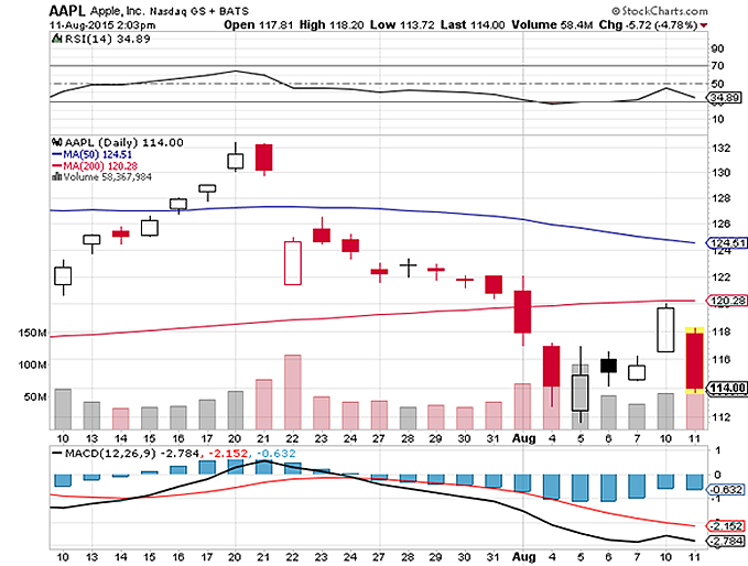 Apple domineert de stierenmarkt die ergens in 2009 van start ging. Sindsdien is de koers van het aandeel met meer dan 850% gestegen. Daarmee liet het de concurrentie op hopeloze achterstand achter zich. Om beleggers te behagen betaalt het tegenwoordig een aardig dividend uit. Het rendement bedraagt iets minder dan 2%. Tot 2017 gaat het bedrijf voor een bedrag van $ 200 miljard aan dividend uitkeren en eigen aandelen inkopen. Het maakt allemaal geen indruk meer. Steeds meer analisten geloven, dat de huidige stierenmarkt naar zijn einde sukkelt. De marginale groei van de S&P 500 in dit jaar komt op het conto van een minuscuul aantal bedrijven: Amazon, Disney, Google, Gilead Sciences, Facebook, Netflix en ja Apple! En over de kracht van het laatste bedrijf zijn nu ernstige twijfels gerezen. Is Apple nog wel een steunpilaar voor de stierenmarkt of gaat het kaarsje langzaam uit!