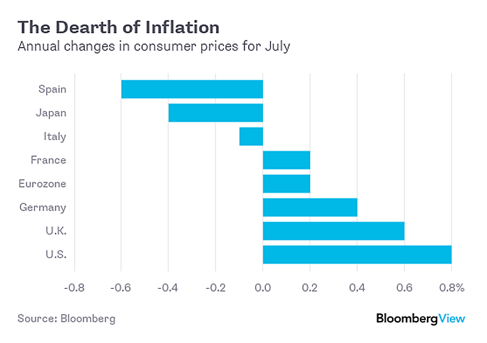 De verlegenheid van economen laat zich steeds beter voelen! Volgen centrale bankiers moet de inflatie naar een niveau in de buurt van 2%. Daar is het beleid van verruiming op gericht. In de praktijk blijkt dat zomaar een moeizame exercitie en het lijkt alsof de doelstelling steeds verder buiten bereik raakt. In nagenoeg alle belangrijke economieën lijkt de inflatie eerder te vertragen dan te versnellen naar een niveau van 2%.