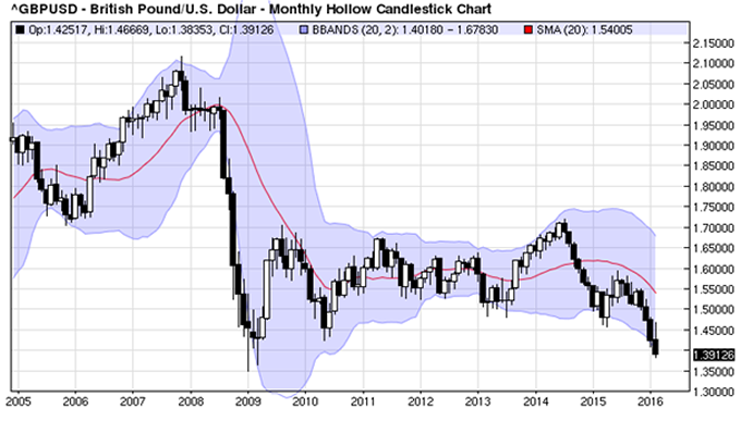 Sinds het bekend worden dat de Britten nog dit jaar, in juni, gaan stemmen over de vraag of ze wel of geen lid blijven van de Europese Unie, heeft de nationale munt klap op klap gekregen. De waarde is gedaald tot onder $ 1,40. Dat is een niveau dat we sinds 2009 niet meer gezien hebben.