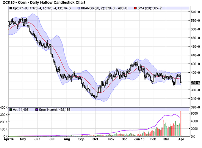 Is daarmee de toon voor 2015 gezet en moeten beleggers rekening houden met een dalende prijs voor maïs? Die conclusie is wel erg voorbarig. Zoals gezegd speelt het weer een grote en niet weg te poetsen rol voor de oogst. Boeren mogen dan wel van plan zijn om 89,2 miljoen acres in te zaaien, maar gaat ze dat ook echt lukken? Wat dat betreft zijn de meningen uiteraard verdeeld. In het zuiden van de VS, in staten als Mississippi, is het nog steeds te koud en te nat om te beginnen met zaaien. Aan het einde van maart is slechts 4% van de beoogde maïs ingezaaid. Op dit tijdstip zou echter al 39% van het areaal ingezaaid moeten zijn. Uit staten als Arkansas en Louisiana komen gelijksoortige geluiden. Ook hier liggen boeren door de kille en natte weersomstandigheden ver achter bij de planning. Volgens sommige boeren loopt die planning maar tot medio april.