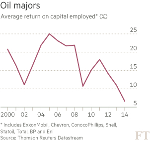 Never waste a good crisis, zeggen de Amerikanen! Dat is nu ook het geval. En dus is de sector tot de conclusie gekomen, dat dit het uitgelezen moment is om de eigen organisatie eens goed tegen het licht te houden. Hetzelfde geldt voor de relatie met de toeleveranciers. Nu de prijzen laag zijn moeten de kosten omlaag, zo is de redenering. In goede tijden heeft zoiets geen prioriteit. Dan gaat het erom zoveel mogelijk vaten naar de markt te sturen. De cijfers liegen er dan ook niet om. In 2000 bedroeg het rendement op het geïnvesteerd vermogen van de Amerikaanse en Europese majors 21%. In 2013 was dat gedaald naar 11%, hoewel de prijs van een vat olie was geëxplodeerd van $ 29 naar $ 109. De kosten waren dus nog sneller gestegen dan de inkomsten!