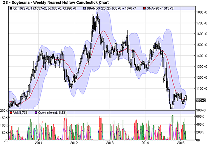 Abares, een Australisch bureau dat kijkt naar de (prijs)ontwikkeling van landbouwproducten, heeft nog onlangs de verwachting uitgesproken, dat prijzen voor tarwe en soja onder druk blijven en nog verder omlaag zullen gaan. Het bureau denkt, dat de prijzen voor wintertarwe van het oogstjaar 2014-2015 omlaag gaan naar $270 per ton ofwel $ 7,35 per bushel. Voor de oogst van 2015 – 2016 zijn de verwachtingen nog minder. Abares voorziet een prijs van $ 265 per ton en dat is de laagste in dit decennium. De oogst van dit jaar zal weliswaar met 707 miljoen ton iets kleiner zijn dan die van vorig jaar, maar de kwaliteit zal veel hoger zijn. In 2014 hadden landen als Roemenië, Oekraïne en Frankrijk veel hinder van regenoverlast, waardoor de tarwe niet meer geschikt was voor menselijke consumptie. Zoals de zaken er nu voorstaan, speelt dat probleem dit jaar niet. De voorspellingen van Abares zijn in lijn van the International Grains Council (IGC) die een oogst van 705 miljoen ton verwacht en met het Canadese ministerie van landbouw. Dat gaat uit van een oogst van 710 miljoen ton.