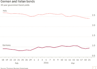Voor sommige beleggers is het immers uitgesloten om obligaties met een negatieve vergoeding aan te schaffen. Verzekeraars en pensioenfondsen beleggen graag in obligaties, omdat die een gegarandeerd inkomen bieden. Hun verplichtingen ten opzichte van hun polishouders maakt het hen echter onmogelijk om papier met een negatieve vergoeding te kopen. Ze zijn steeds meer aangewezen op papier uit de periferie. Daardoor zal de spread tussen Zuidelijk en Noordelijk papier alleen maar kleiner worden. De les van de eerste weken van 2016 is echter, dat niets zeker is. Scenario’s kunnen van de ene dag op de andere op hun kop gezet worden.