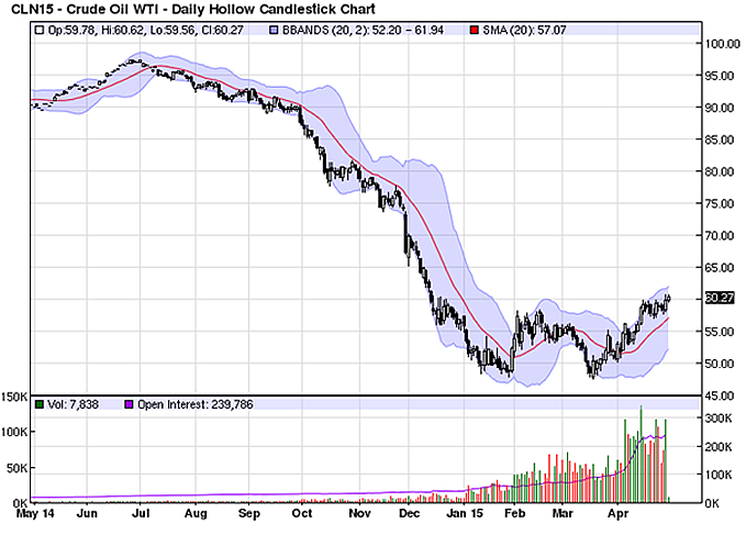 Afgelopen week schoten de prijzen voor zowel Brent als voor West Texas Intermediate (WTI) de lucht in. De prijs voor een vat olie schommelt rond een niveau van $ 60 en voor Brent ligt de prijs al boven $ 65. De prijsstijging in de maand april ligt daarmee boven 20% en is het huidig prijsniveau het hoogste in 4 maanden. Voor sommigen zijn dat de eerste tekenen dat prijzen weer teruggaan naar het oude niveau van $ 100 per vat. Maar dat is misschien toch iets teveel wensdenken. Er zijn goede argumenten aan te voeren waarom de prijsstijging beperkt zal blijven.