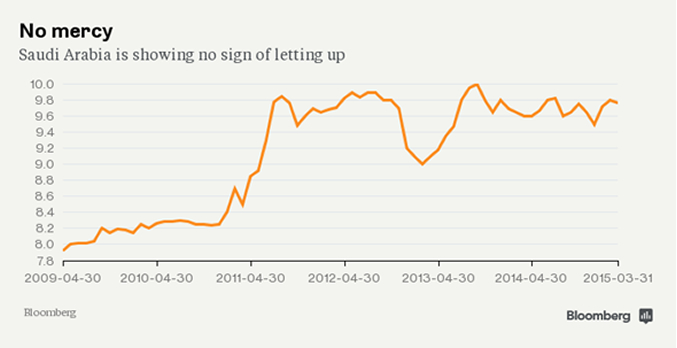 Het vierde argument is, dat ook Saoedi Arabië van geen wijken wil weten bij het verdedigen van het eigen marktaandeel. De productie van het land gaat nog steeds voorzichtig omhoog, want de markt is in uitstekende conditie. Dat althans is de mening van prins Abdulaziz bin Salman, onderminister van energie. Uit die woorden valt niet af te leiden, dat het beleid van Saoedi Arabië op korte termijn gaat veranderen. Het enige wat op korte termijn een spaak in het wiel kan steken is, dat dit land meer en meer een direct onderdeel wordt van de strijd in het Midden Oosten. het forse prijsherstel van een vat Brent is daar een weerspiegeling van.