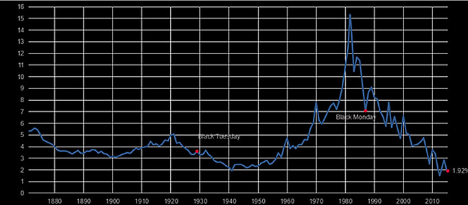 Figure 1 Ontwikkeling tienjaars rente in de VS