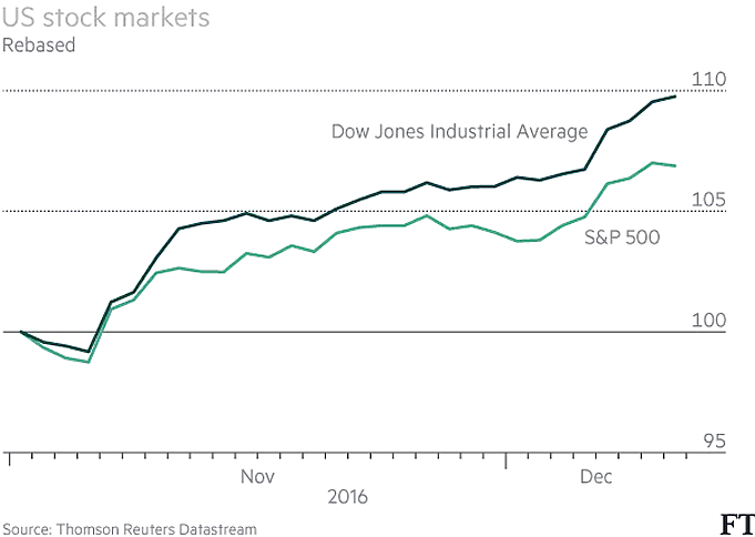 Sinds de verkiezing van Trump als de nieuwe president van de VS heeft Wall Street de rest van de wereldwijde beurzen duidelijk op achterstand gezet. Alle grote beurzen in de VS hebben het ene na het andere record laten noteren. In Europa dateert het laatste record van de Euro Stoxx 600 alweer van april 2015 en dat geldt ook voor de Duitse Xetra Dax 30.