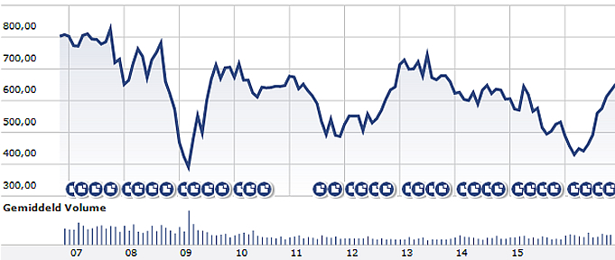 Figuur 1 Beleggers hebben Deutsche Bank de rug toegekeerd
