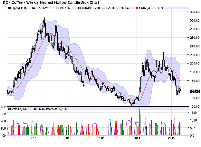 De experts van Commerzbank, Société Generale en Rabobank gingen er aan het begin van 2015 ervan uit, dat de prijs voor een lb (0,453 gram) in de loop van 2015 kon stijgen naar een niveau tussen $ 1,50 en $ 2. De oorzaak voor de prijsstijging zochten ze in de terugkeer van de droogte in de koffieproducerende regio’s van Brazilië en de aanhoudende groei van het aantal koffiedrinkers wereldwijd. Daardoor dreigt er, volgens deze banken, op termijn een schaarste aan koffie te ontstaan.