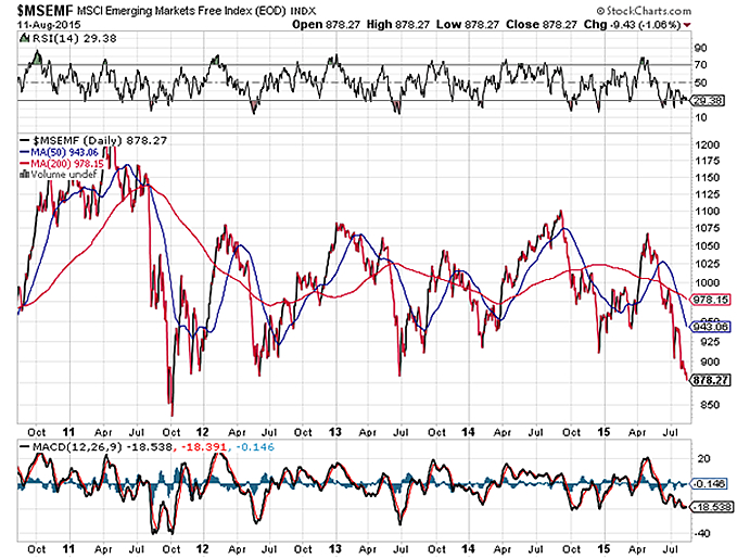 De huidige problemen voor de Opkomende Markten laten zich in twee thema’s samenvatten. Het eerste thema is het rentebeleid van de Fed, waardoor geld nagenoeg gratis werd en beleggers op zoek gingen naar meer en beter rendement. Dat vonden ze in de Opkomende Markten. Het tweede thema heet China. Dit land fungeerde jarenlang als de motor die in andere landen de economie aanjoeg. Het Braziliaanse groeiwonder was feitelijk te danken aan de niet te stillen honger van China naar soft en hard commodities. Beide thema’s lijken nu uitgespeeld. De Fed gaat nog dit jaar de rente verhogen en beleggers en investeerders lopen nu al vooruit op deze beslissing door hun investeringen en beleggingen in de Opkomende Markten terug te draaien. Het Chinese groeiwonder lijkt definitief voorbij. Met de recente devaluatie maakt Peking duidelijk, dat het land alles zal doen om zijn positie op de exportmarkten te verdedigen en te verbeteren. Daarmee is de basis onder de groei van de Opkomende Markten komen te vervallen.